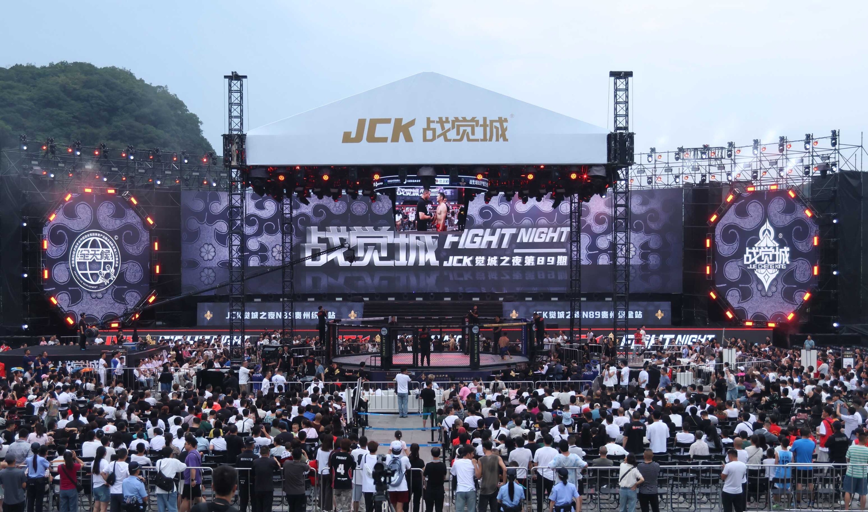7月27日,第二届织金搏击文化旅游季系列活动JCK觉城之夜N89贵州织金站比赛在平远古镇织金饭店前广场举行,16名顶尖运动员巅峰对决,以一场场激动人心的较量,呈现了一幕幕热血沸腾的格斗场面。