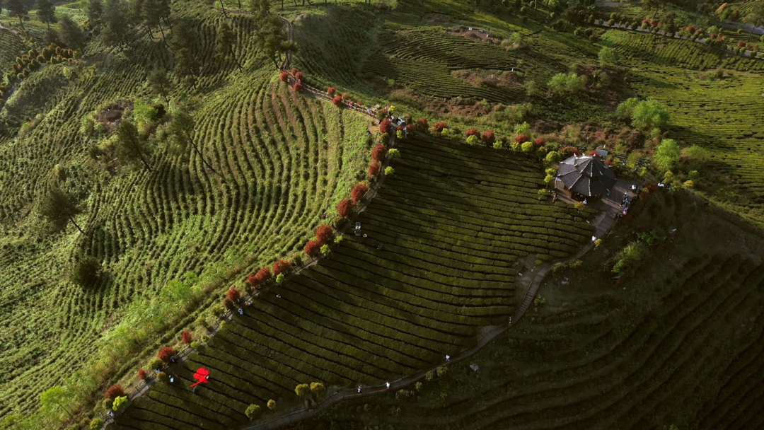 久安茶园是久安乡众多茶园中的一个,也是面积较大的一个。园内不仅能观赏到一万多亩绿油油的茶海,还能深入其中亲自体验采茶。