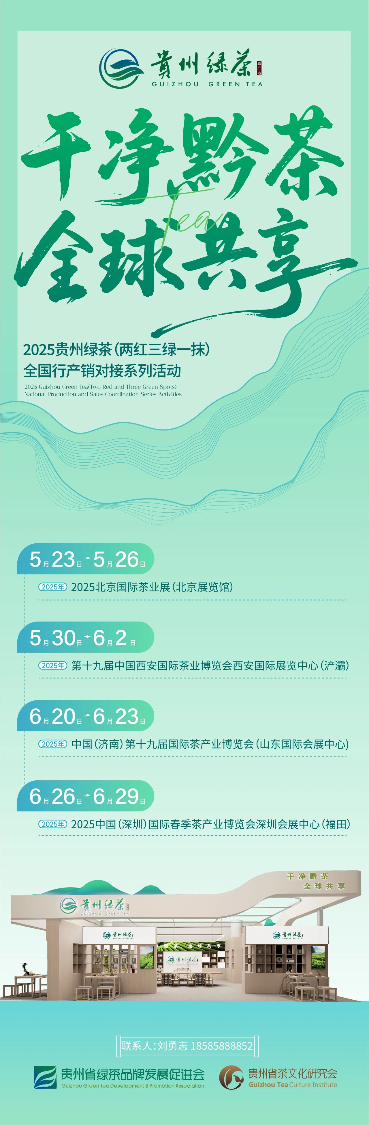 5月至6月,在上级主管部门的大力支持下,贵州省绿茶品牌发展促进会、贵州省茶文化研究会充分发挥行业社会组织优势,以“干净黔茶·全球共享”为主题的2025贵州绿茶全国行产销对接系列活动即将启航。