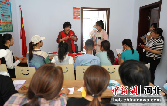 图为石俊凤在教村民们学习剪纸。 刘彦娇 摄