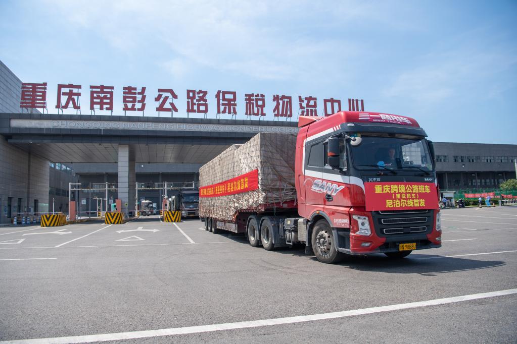 一辆满载二手小型轿车的西部陆海新通道跨境公路班车近日从重庆公路物流基地的南彭公路保税物流中心(B型)驶出,将从云南磨憨口岸出境,4天后就可抵达老挝万象。