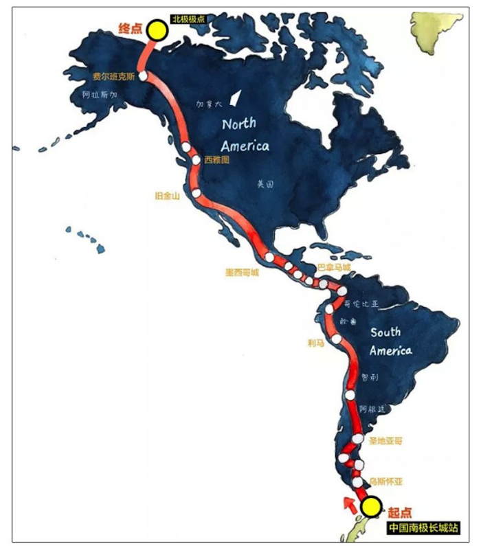 此次挑战,白斌探索人类跑步极限,从南极经南北美洲到达北极。