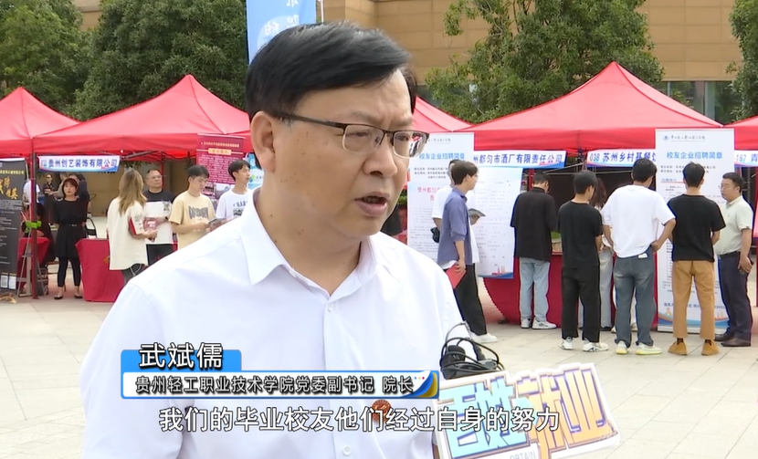 贵州轻工职业技术学院党委副书记院长武斌儒:我们学校的毕业校友通过自身的努力,不论是自己创业的,还是入职其他企业,都已经取得了不错的成绩,学院专门开辟了校友招聘这个招聘通道,目的是想通过校友的努力带动学弟学妹们进入到他们的企业去工作。