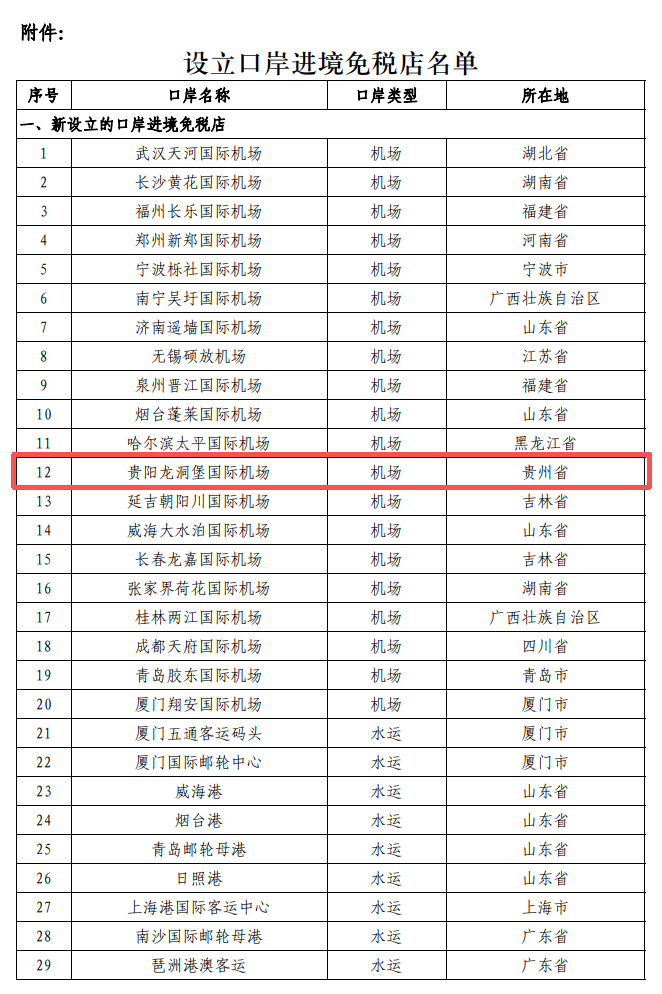 贵阳龙洞堡国际机场口岸新设进境免税店