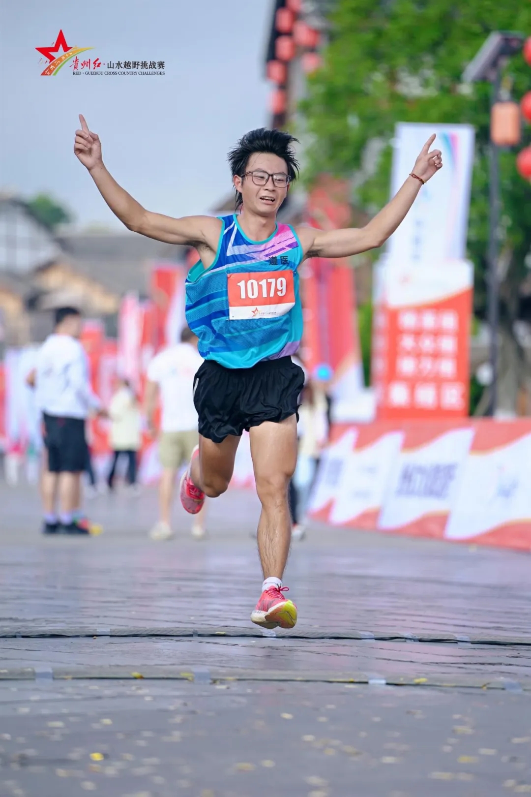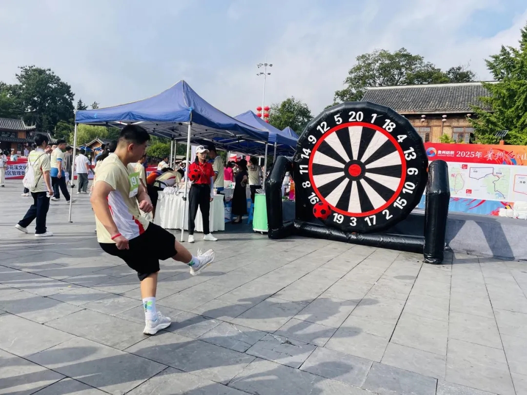 看,拼搏的身影又飒又美!2025年贵州红・山水越野挑战赛(花溪站)的赛道上,有选手与好友并肩冲刺,手臂相挽冲过终点时,笑容里满是共享胜利的喜悦;有参赛者放缓脚步,跑过古巷砖墙,眼望青山绿水,沉浸式享受赛道沿途的红色印记与自然之美;还有人在“景区天天运动会”趣味环节中专注挑战,闯过跳绳、投篮等关卡后,高举双手欢呼胜利的模样格外动人。