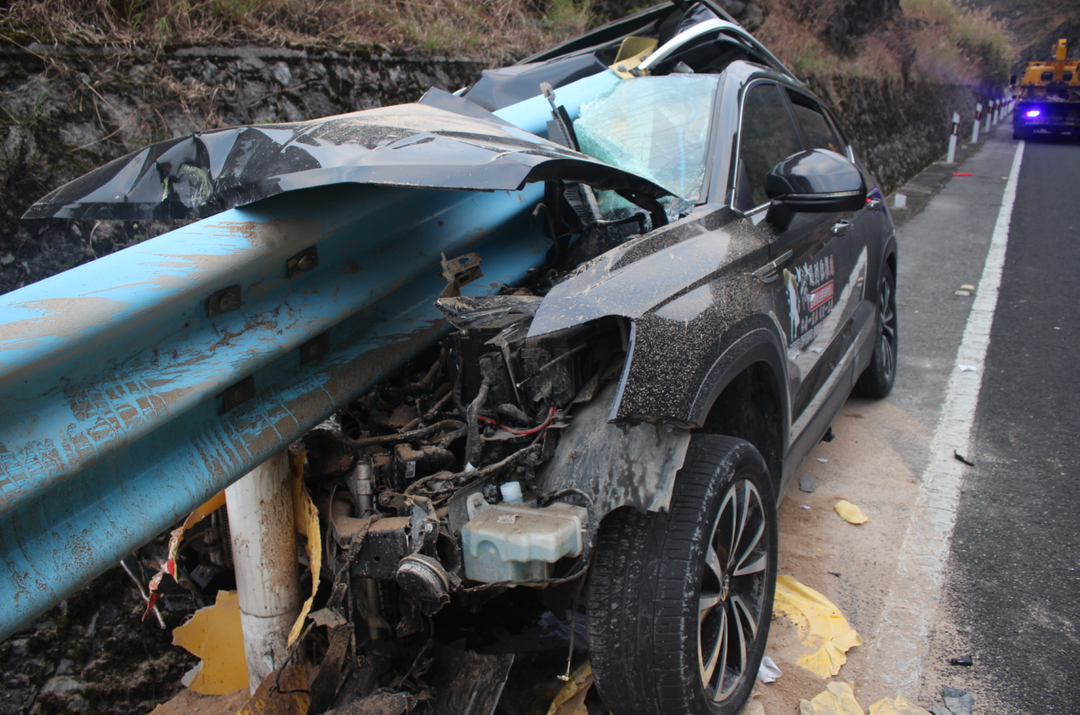 近日,安顺市公安交通管理局直属三大队接到驾驶人报警,称其驾驶车辆在辖区水黄线8公里100米处碰撞路边铁护栏,车辆几乎报废,请求出警。