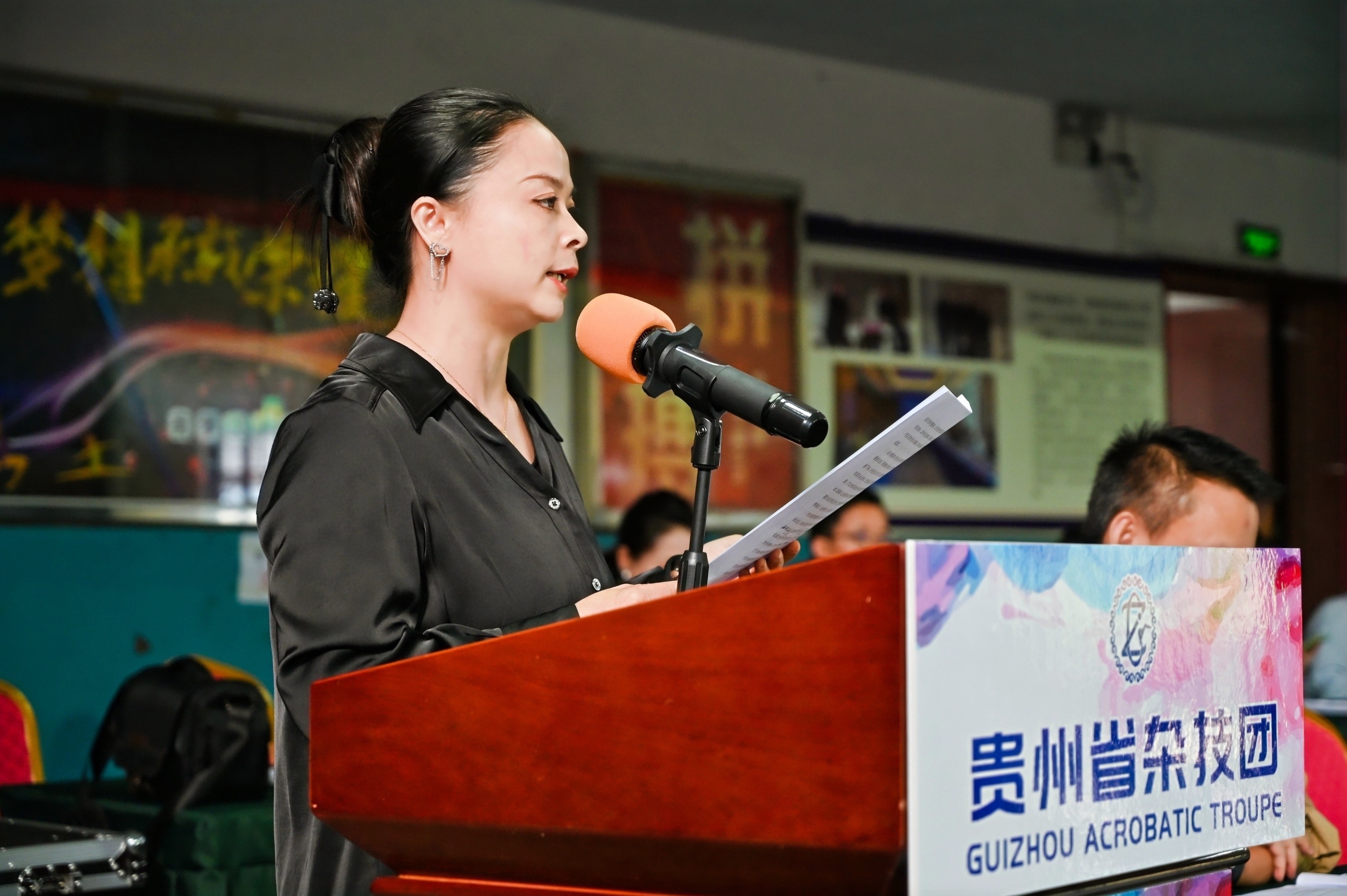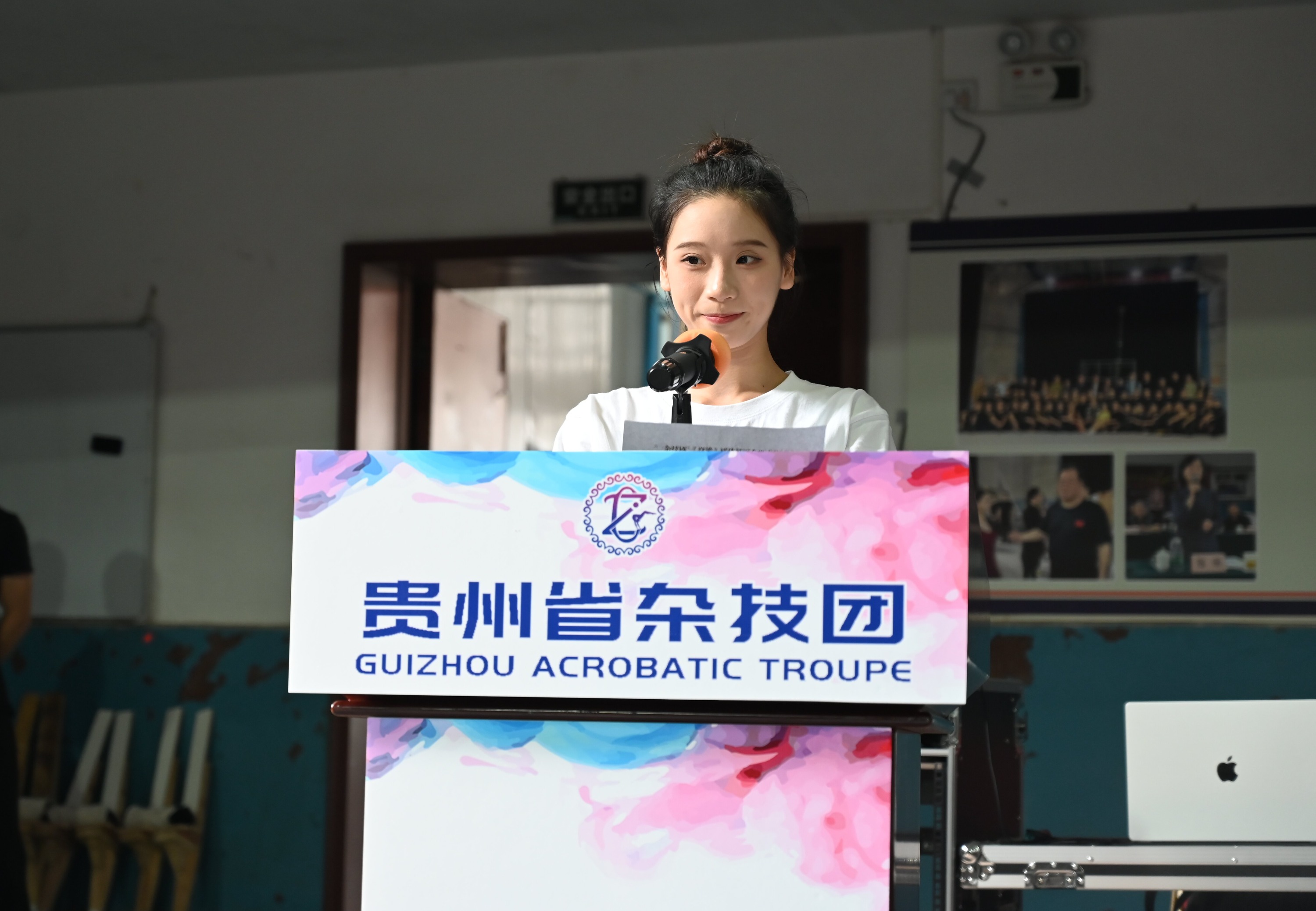 贵州省杂技团党支部副书记、总经理、艺术总监,杂技剧《脊梁》制作人陆水莲介绍杂技剧《脊梁》制作及试演安排