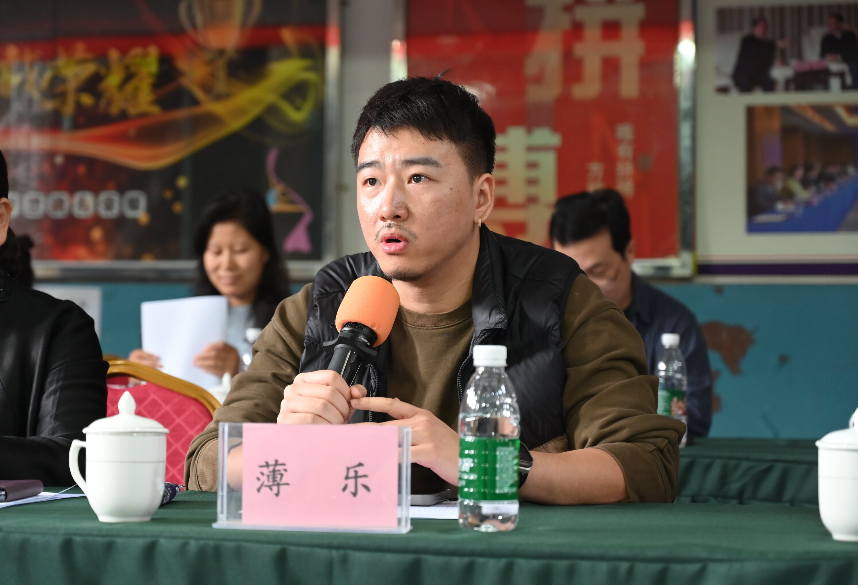 贵州省杂技团有限公司党支部书记、执行董事杨煦介绍出席见面会的专家领导及主创团队情况
