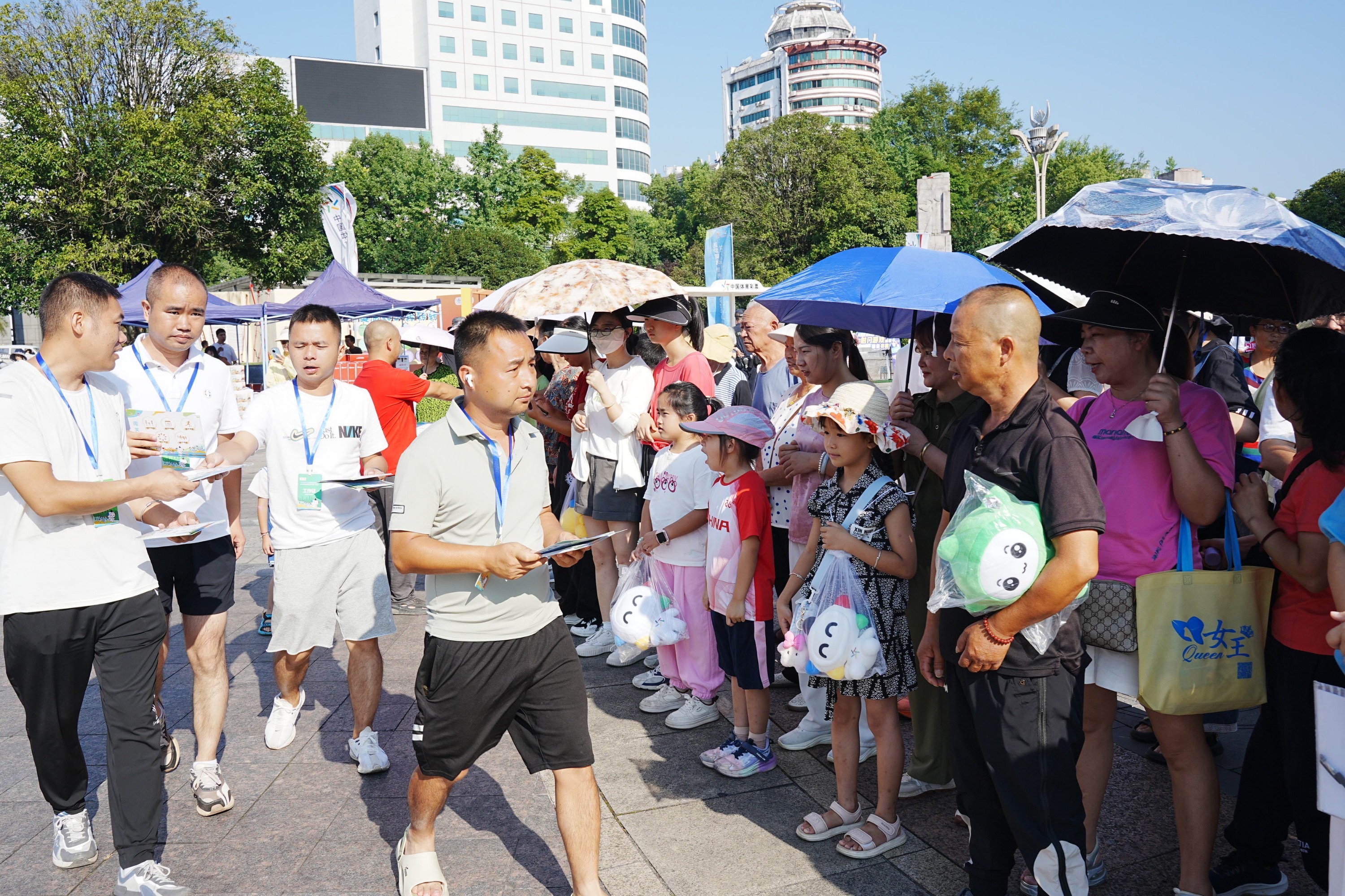 赛场的集章处也排起长龙,孩子们举着盖满印章的任务手册蹦蹦跳跳,家长们则忙着在朋友圈上传“战绩”,九宫格里既有孩子龇牙咧嘴的搞怪瞬间,也有全家手拉手冲线的温情合影。欢笑声、惊叹声与加油呐喊交织成沸腾的声浪,连树梢上的蝉鸣都成了这场家庭运动狂欢的背景音。