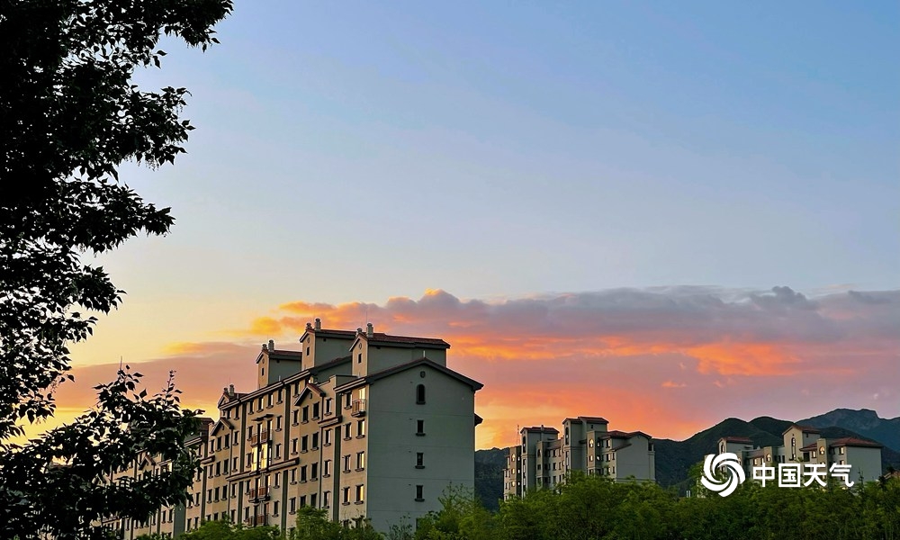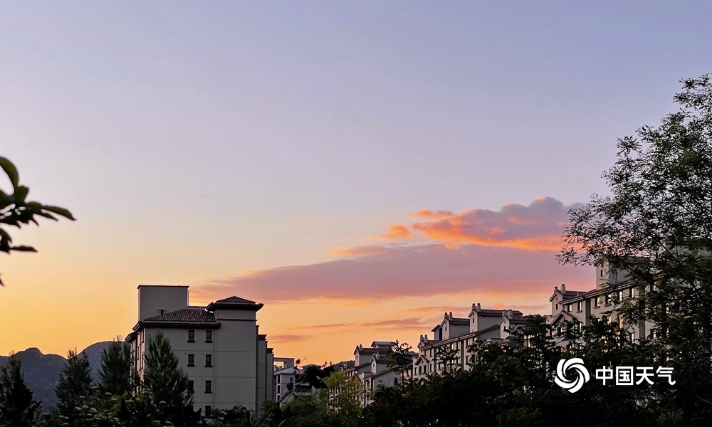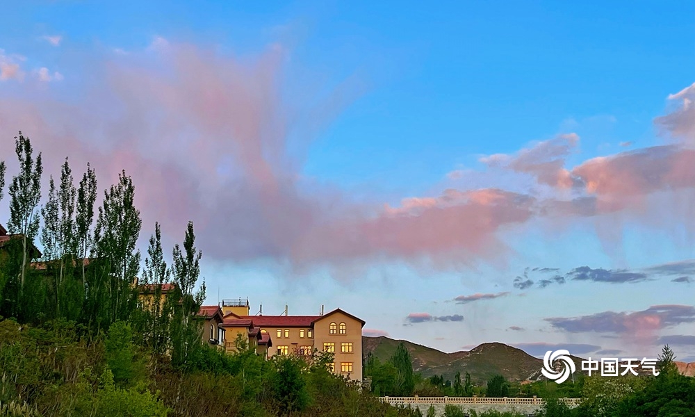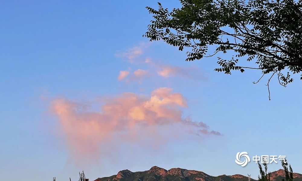 中国天气网讯 今晨(5月16日),北京天空蓝天打底,粉云点缀,十分梦幻,你看到了吗?(图/中国天气网 王晓)