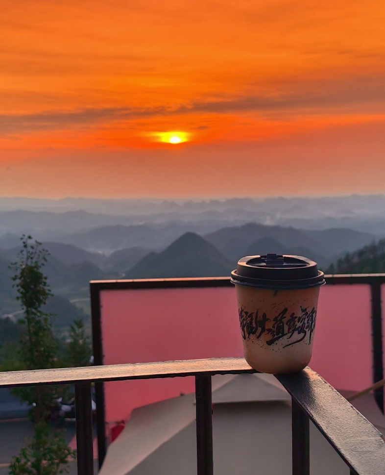 落日把层峦泼成金红时,骑手们卸下头盔,捧起霞客驿站那杯独调咖啡,将一路落日金辉与眼前漫溢的温柔,都一口饮进了心里。