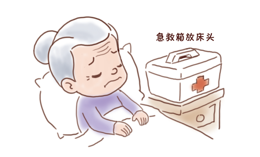 急救药箱建议放在老人床头,方便自救。急救药箱里需要准备的药品包括硝酸甘油、阿司匹林、沙丁胺醇喷雾剂等。