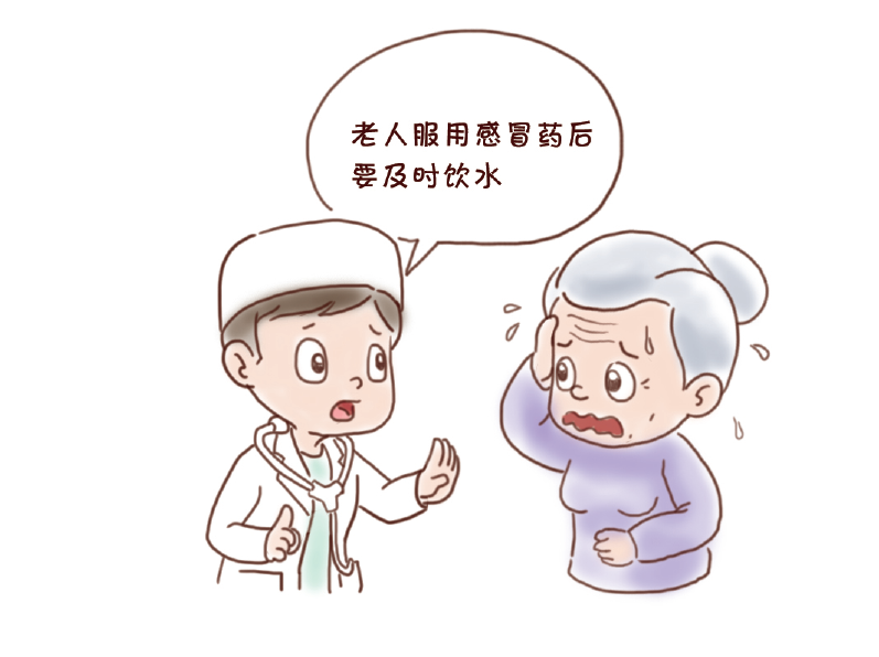 因此,在有老人的家中建议可备一些作用相对温和的抗感冒中成药。如果感冒症状明显,老年人服用复方抗感冒西药进行治疗后应及时饮水,并注意有没有出现心脏及排尿方面的不适表现。