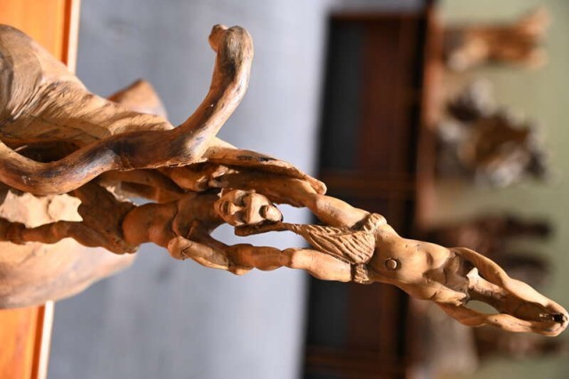 来自英国的William Prickett《生命之悦》根雕作品。 中青报·中青网记者 李剑平/摄