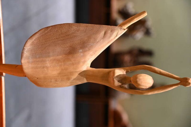 来自中非共和国的托马斯·博卡《跳舞的女孩》根雕作品。 中青报·中青网记者 李剑平/摄