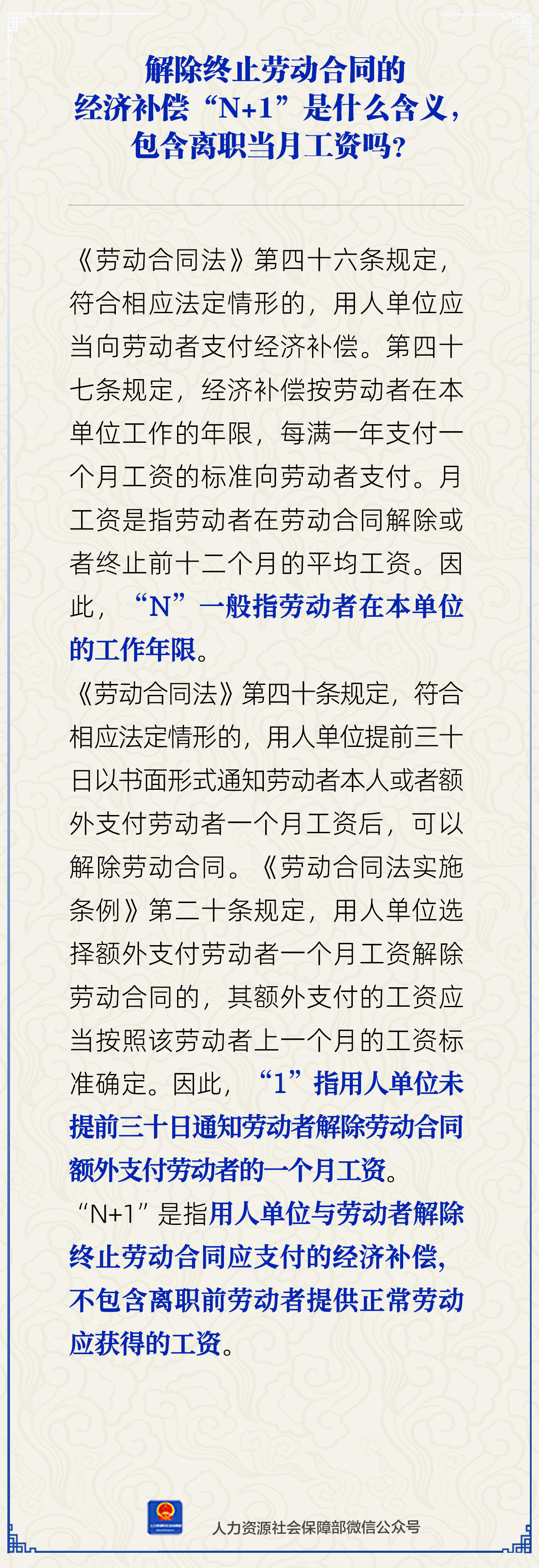 解除终止劳动合同的经济补偿“N+1”是什么含义?