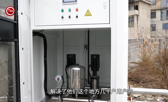 贵阳市北控水务观山湖分公司副经理韩华:在接管的过程中,水压会受影响,我们积极和各级部门协调以后,把泵站给他们建好了, 解决了他们这个地方几十户用水各方面的问题。目前金华镇、朱昌镇、百花湖镇,我们有34座加压泵站,这种大型的、一体化的泵站解决了各个地方、 各个村的高处用水的问题。