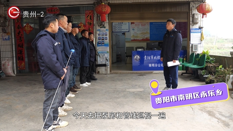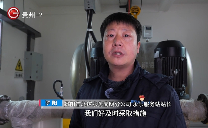 贵阳市北控水务南明分公司永乐服务站站长罗阳:12月中旬,我们永乐供水服务站成立了抗凝冻、保供水的应急抢修小组, 每天全面巡查供水泵房及管网的运行安全,排除安全隐患 。凝冻期间,我们增加了人手,实行“以战为家”的24小时值班制度,立即响应,快速处置,全力保障村民的用水安全稳定。