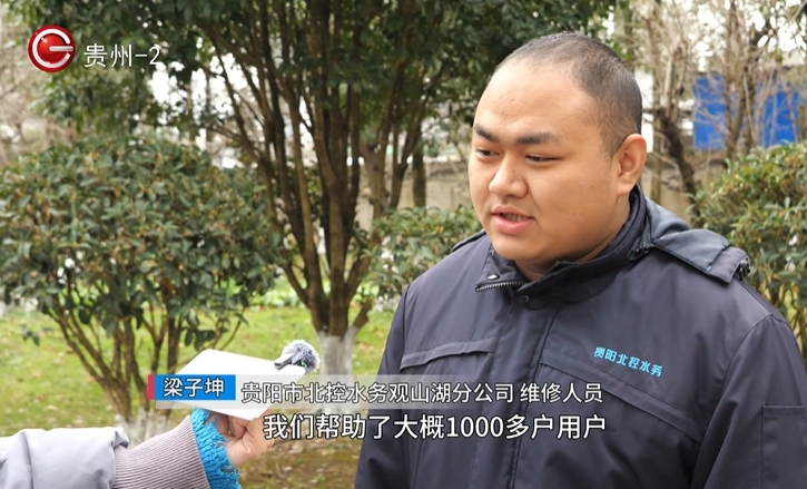 贵阳市北控水务观山湖分公司维修人员梁子坤:2024年1月份的时候, 凝冻比较严重,持续了20多天,在这20多天里,每天我们很少休息,帮助了大概一千多户用户。虽然苦和累,但能保障用户的供水,这些是值得的。