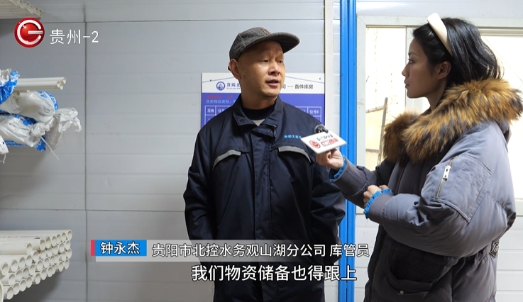 贵阳市北控水务观山湖分公司库管员钟永杰:一旦凝冻,维修师傅抢修,我们物资也要跟得上,特别是PVC的管件容易坏,所以我们准备了很多。我们和物资那边已经联系好了, 如果哪里的物资需要补给,联系总部,总部在8小时之内就会把物资送到。