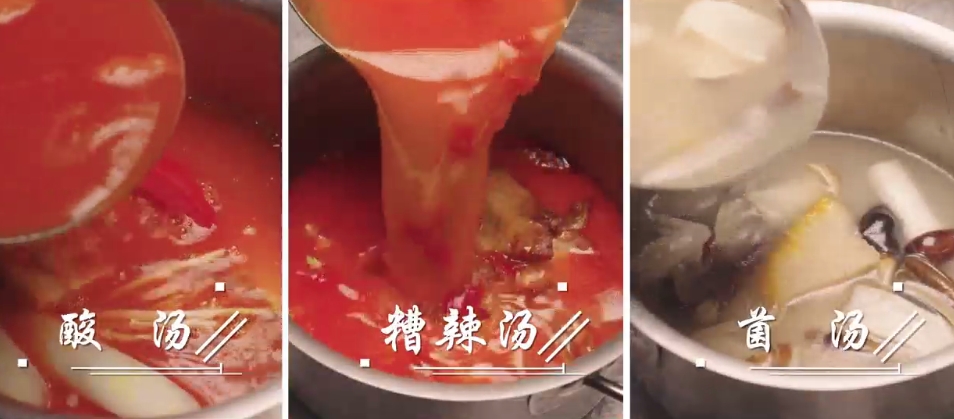 汤底则包含了贵州人民最喜欢的酸汤,特调的糟辣烫、用料十足的菌汤等汤底。