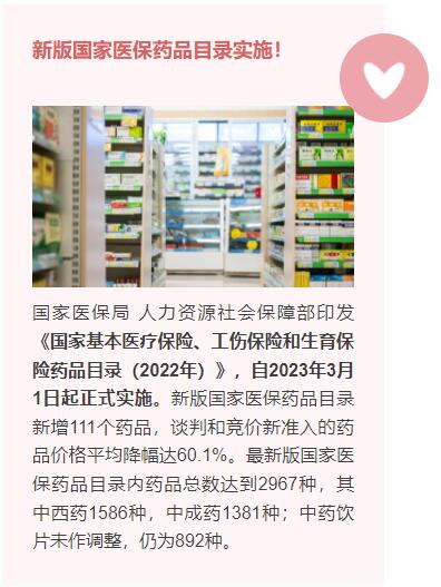 我们先来关注第一个话题,那就是医保!医保是老百姓的“生命线”,守护的是广大参保人的“救命钱”。这项工作的持续改进、优化,不断加强和提升,都是为了更好地担起自己的民生使命,给每个参保人带来更强保障和更多实惠。下面我们一起来看看,3月1日即将实施的新版国家医保药品目录实施吧!