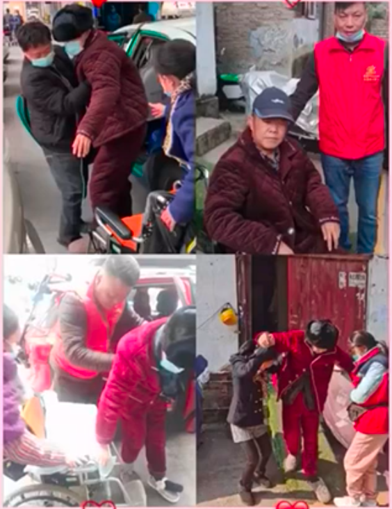 “每次师傅们就把车停在门前,然后从屋头把我先生背到车上,在这斜坡上慢慢挪下来,再把轮椅收进后备箱。唐司、刘司、李司……他们真的太好了!”