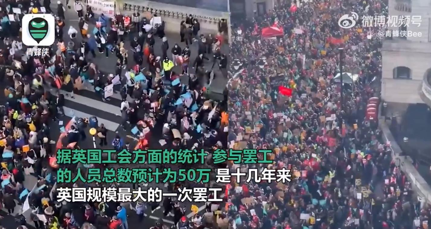 ▲当地时间2月1日,英国多达50万人因薪资问题举行罢工,导致交通网络瘫痪、多地学校停课。这是英国大约10年来举行的最大规模罢工。