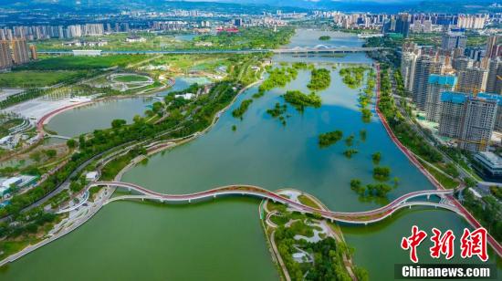 近年来,西安持续推进河湖治理,全域治水、碧水兴城,良好的水环境再次回到西安市民的日常生活中。图为西安通过对河流的综合治理和流域的生态重建,完善城市形态,改善生态环境,实现城市的可持续发展。