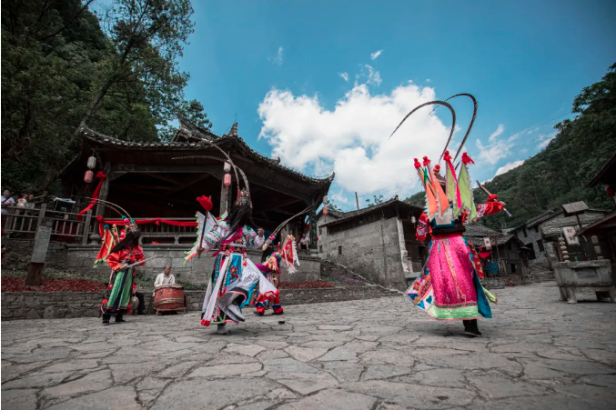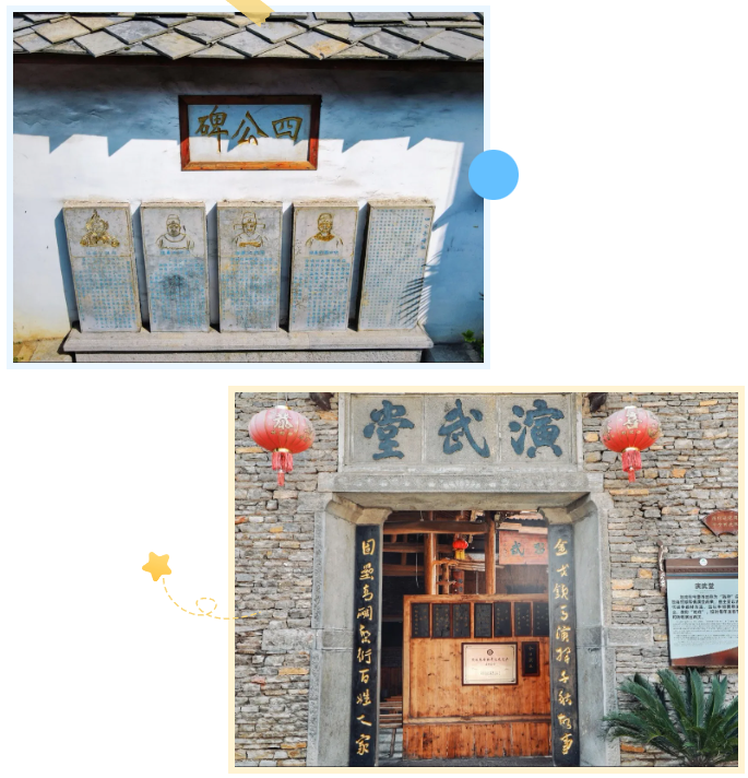 为纪念随明军入黔的四位始祖而修建的“四公碑”、拥有六百多年历史的古屋“九道坎”、还有从民居开辟为地戏表演场地的“演武堂”,无不诉说着它的风采。