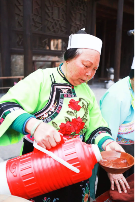 明洪武年间,屯堡人的祖先“调北征南”到贵州,路上行程一年,吃无油无盐的粽子、喝山溪河谷中的生水,难免肠胃不好、身体欠佳,为了将生水消毒杀菌,当时的人们就将三种秘方中药撒到生水里喝,既消毒,还能驱寒,最终“无一人损失”。