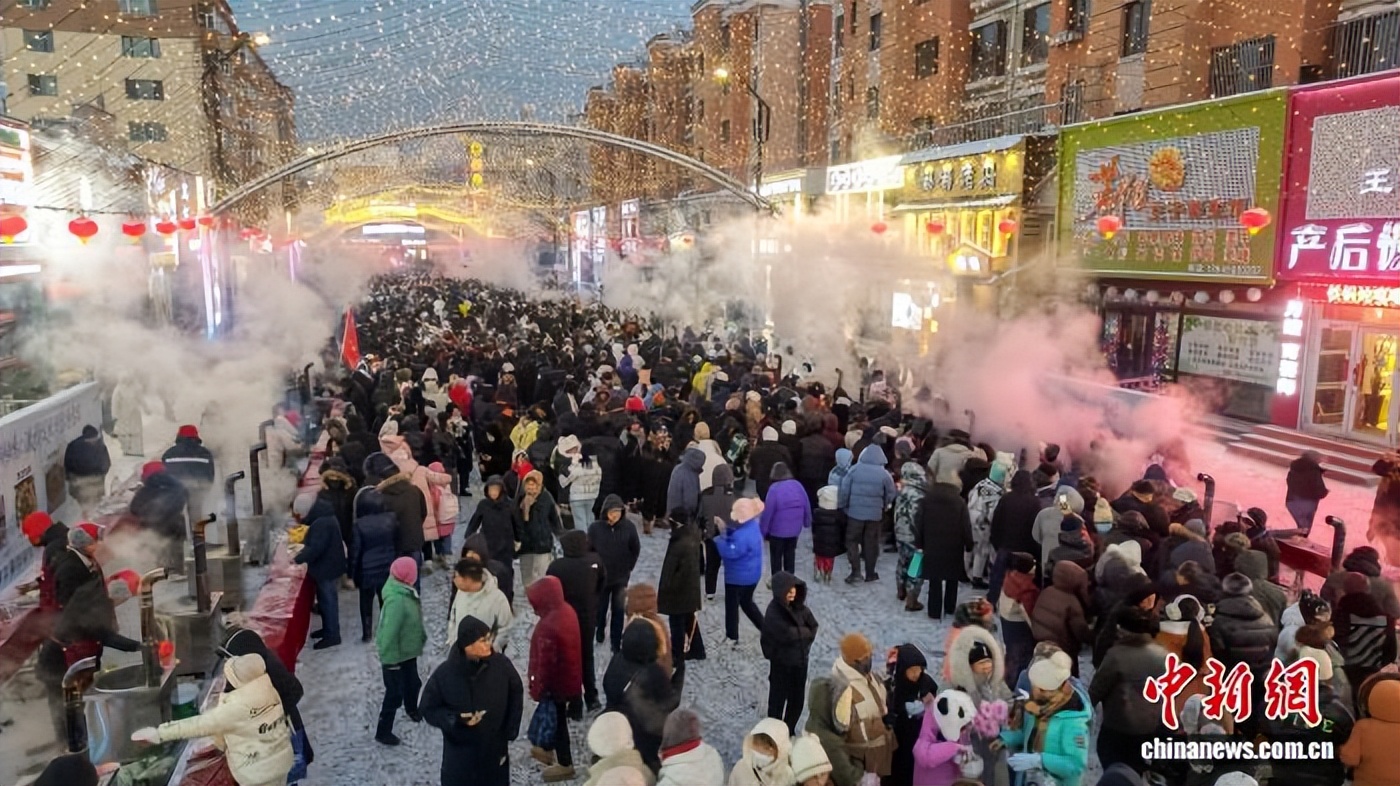 12月31日,黑龙江省伊春市伊美区“林都美食一条街”香气四溢,百口铁锅炖品鉴活动吸引市民及游客闻香而来,共赴舌尖上的冬日盛宴。