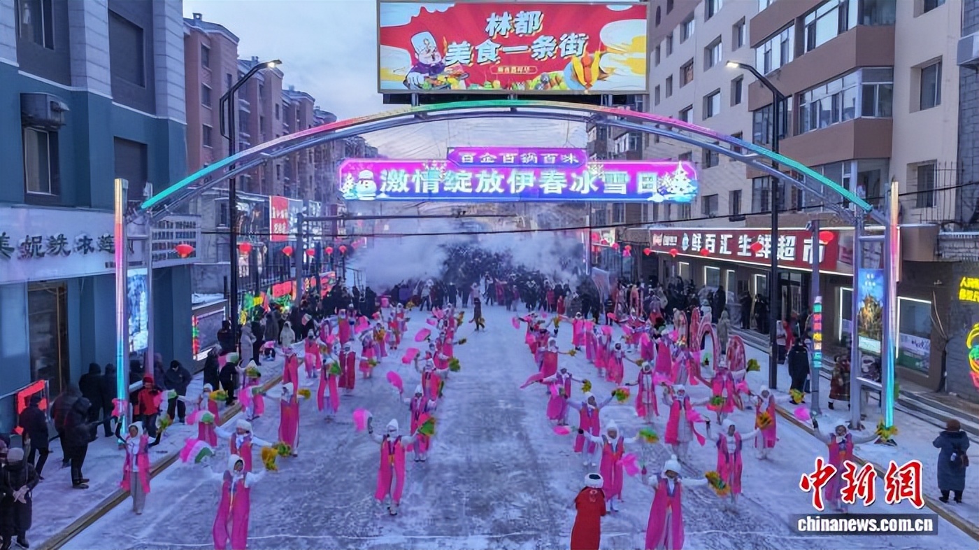 美食之外,秧歌队演员踏着欢快的节拍扭出浓浓年味,浪漫的花车表演引得游客纷纷驻足打卡,沉浸式体验北国冬日的热情与活力。据悉,此次活动依托“冰雪+美食”的深度融合,串联文化旅游、森林食品等产业链条,进一步展示出“林都”伊春冰雪旅游资源的独特魅力。