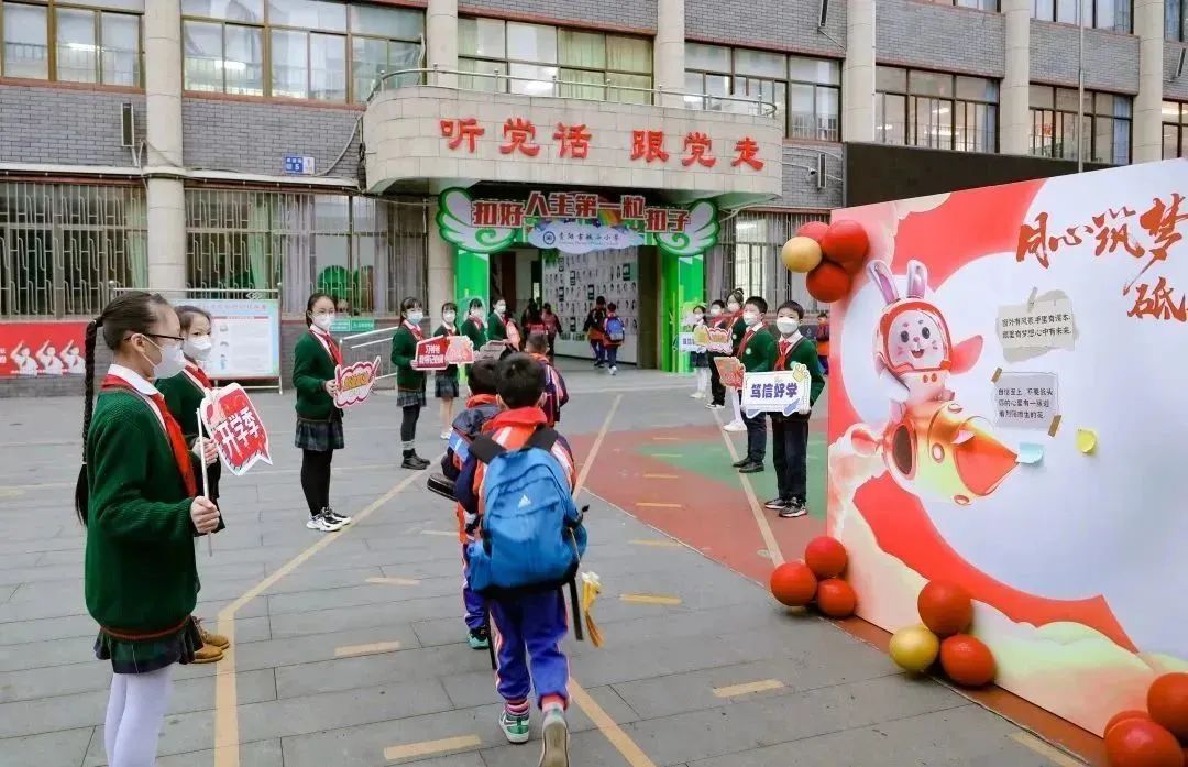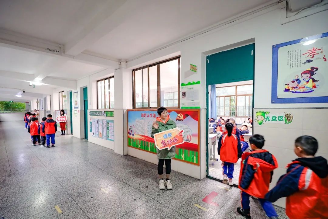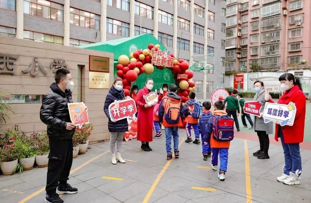 2023年2月13日上午,城西小学全体教师早早来到学校,亲切的问候、温馨的笑脸,伴随着校歌《竹韵城西》的优美旋律,在谭校长的带领下,行政领导和老师们热情地在校门口和班级门口迎接孩子们的到来。
