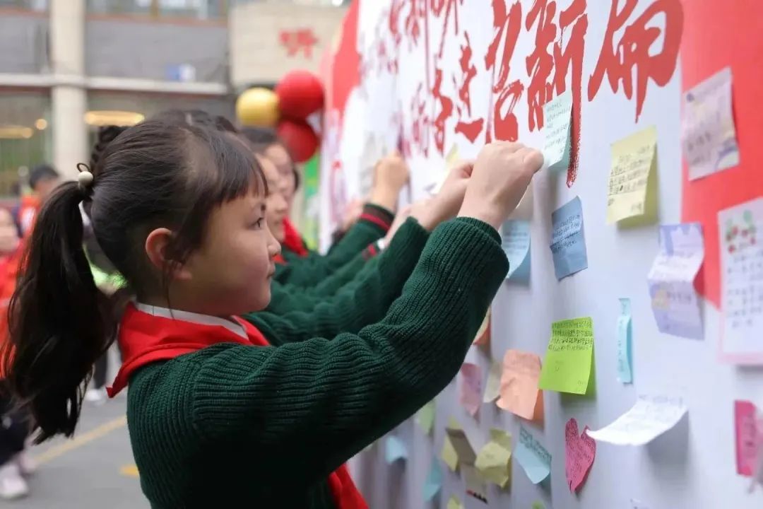 开学典礼结束后,同学们把自己的心愿贴在了新学期愿景墙上,这是孩子们对新学期的向往、对自己的期待、对未来的希冀。等到学期结束,再回过头来看看,自己的计划是否完成?你对自己的期待是否如愿?希望你们鼓励自己,向着目标加油!