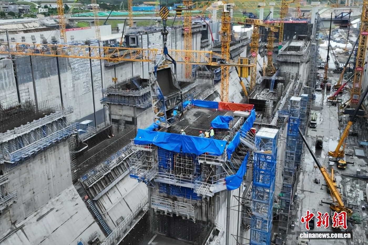 平陆运河马道枢纽首个船闸闸室中墩封顶