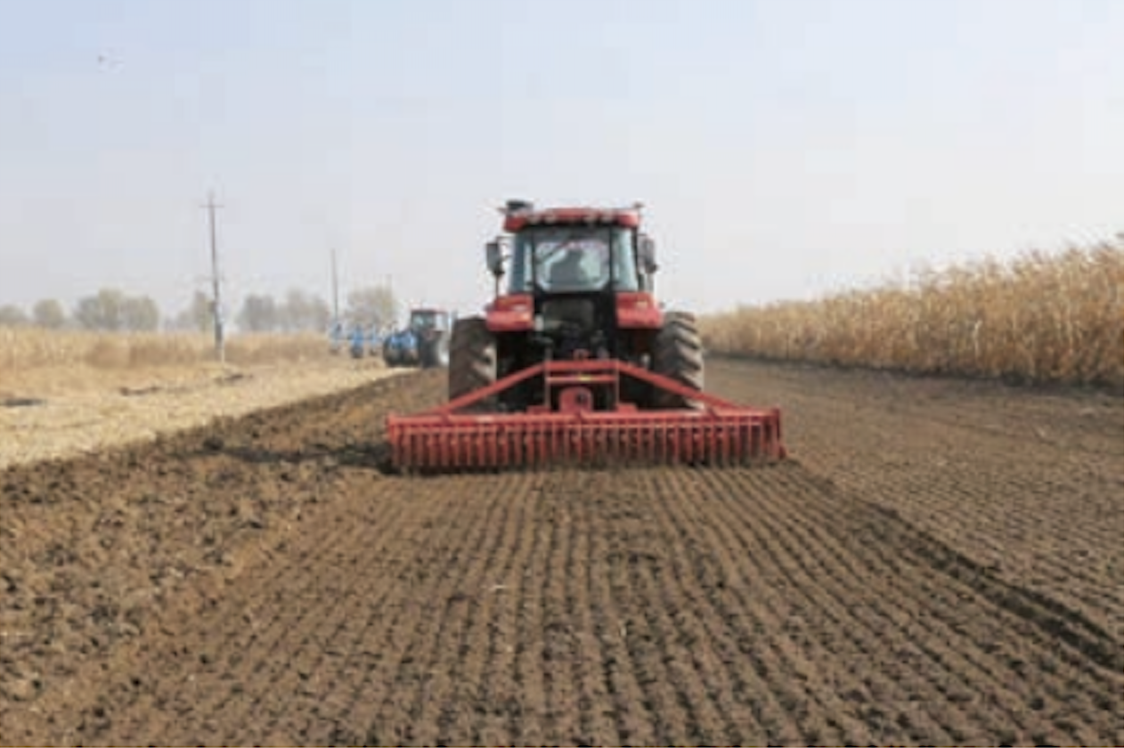 根据土壤墒情,适时采用动力驱动耙或旋耕机进行碎土、重镇压作业,防止失墒和风蚀。