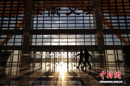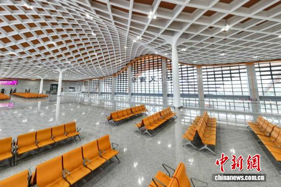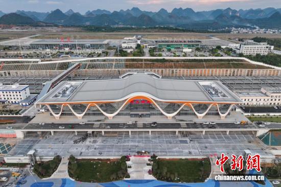 航拍位于贵州省兴义市的兴义南站候车大厅