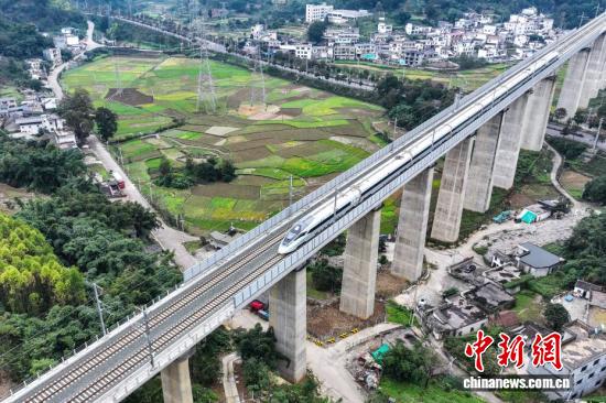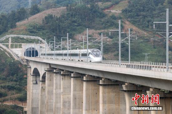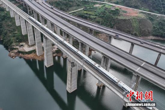 11月20日,贵州省兴义市,55933次运行试验列车行驶在盘兴高铁清水河镇特大桥上