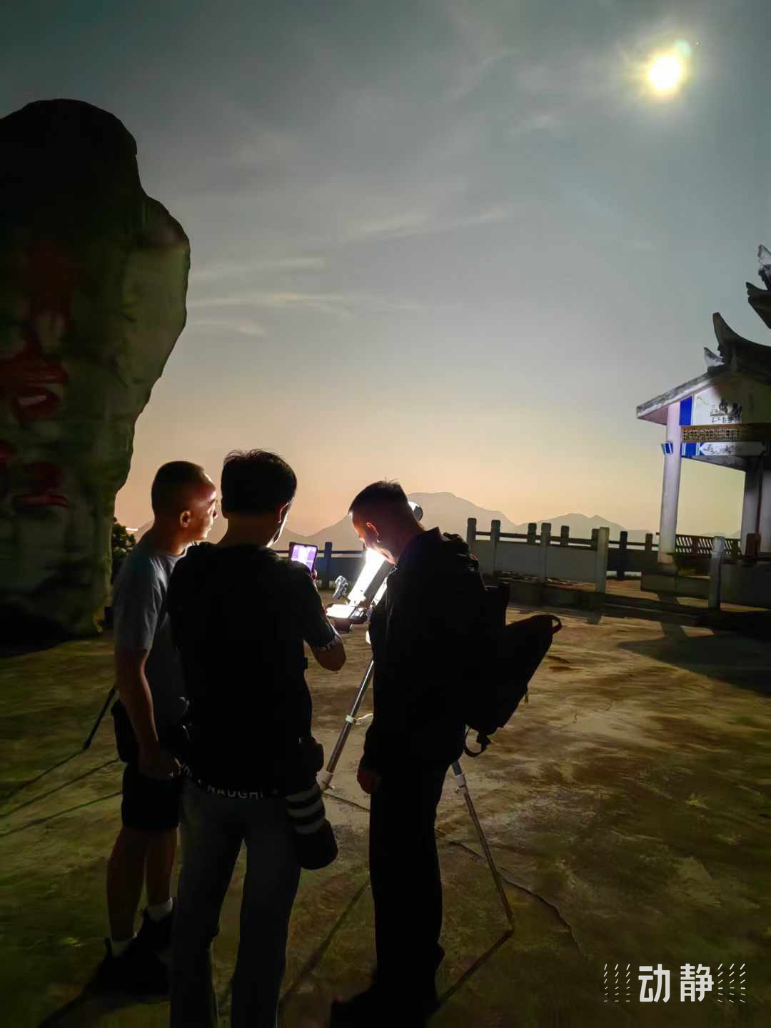 为了捕捉这只超级月亮,还有网友架起“长枪短跑”,留下它“魁梧”的身影。