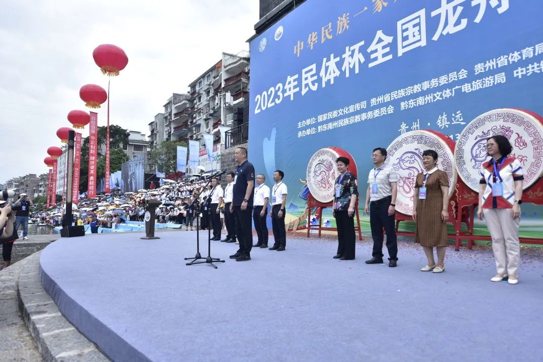 据了解,本次比赛由国家民委文化宣传司、贵州省民族宗教事务委员会、贵州省体育局、黔东南州人民政府主办,黔东南州民族宗教事务委员会、黔东南州文体广电旅游局、中共镇远县委、镇远县人民政府承办。比赛为期2天,赛事将持续至13日,全国龙舟比赛设置有直道竞速500米、200米竞赛项目,独竹漂比赛设置200米、100米竞赛项目。