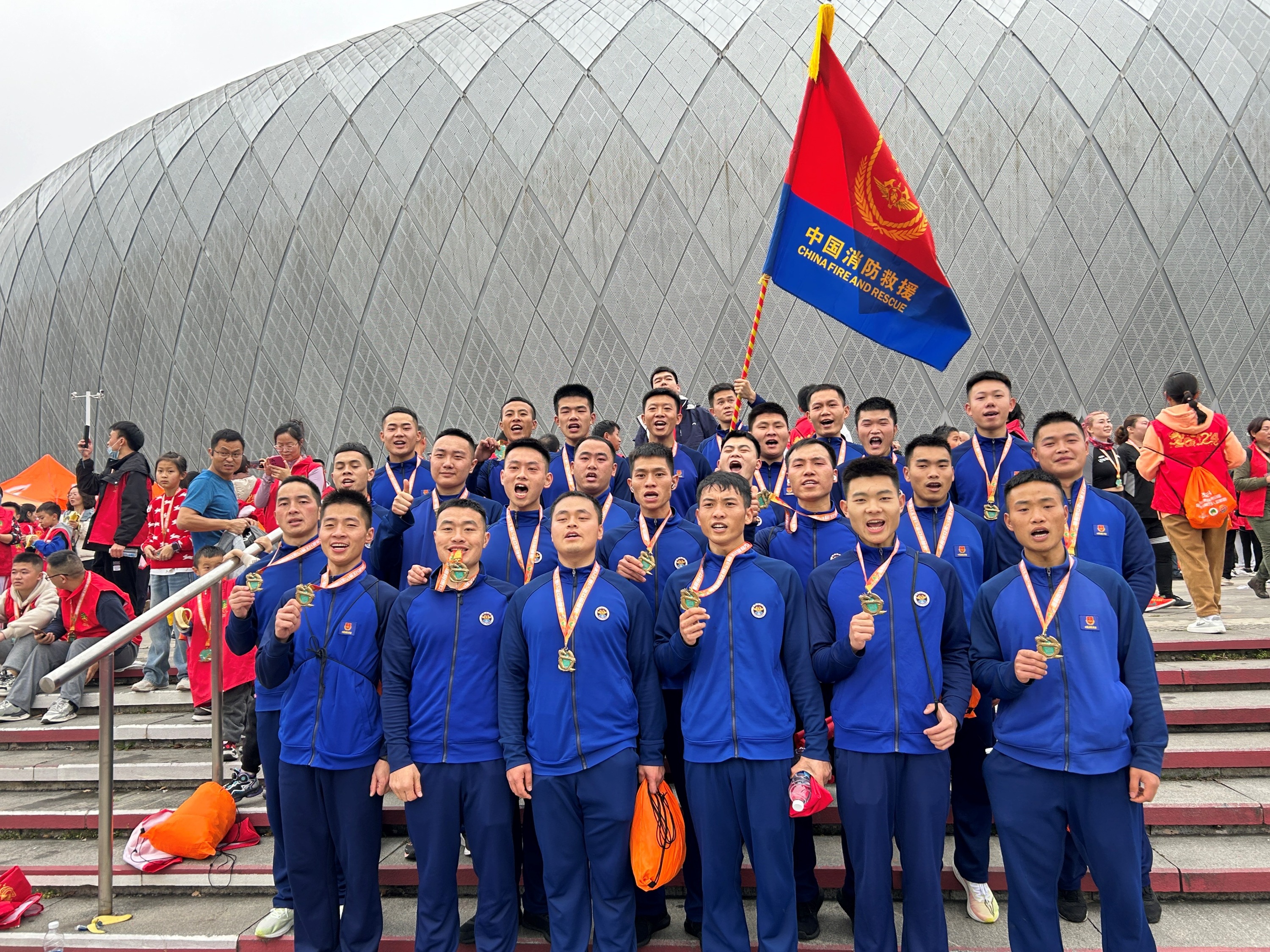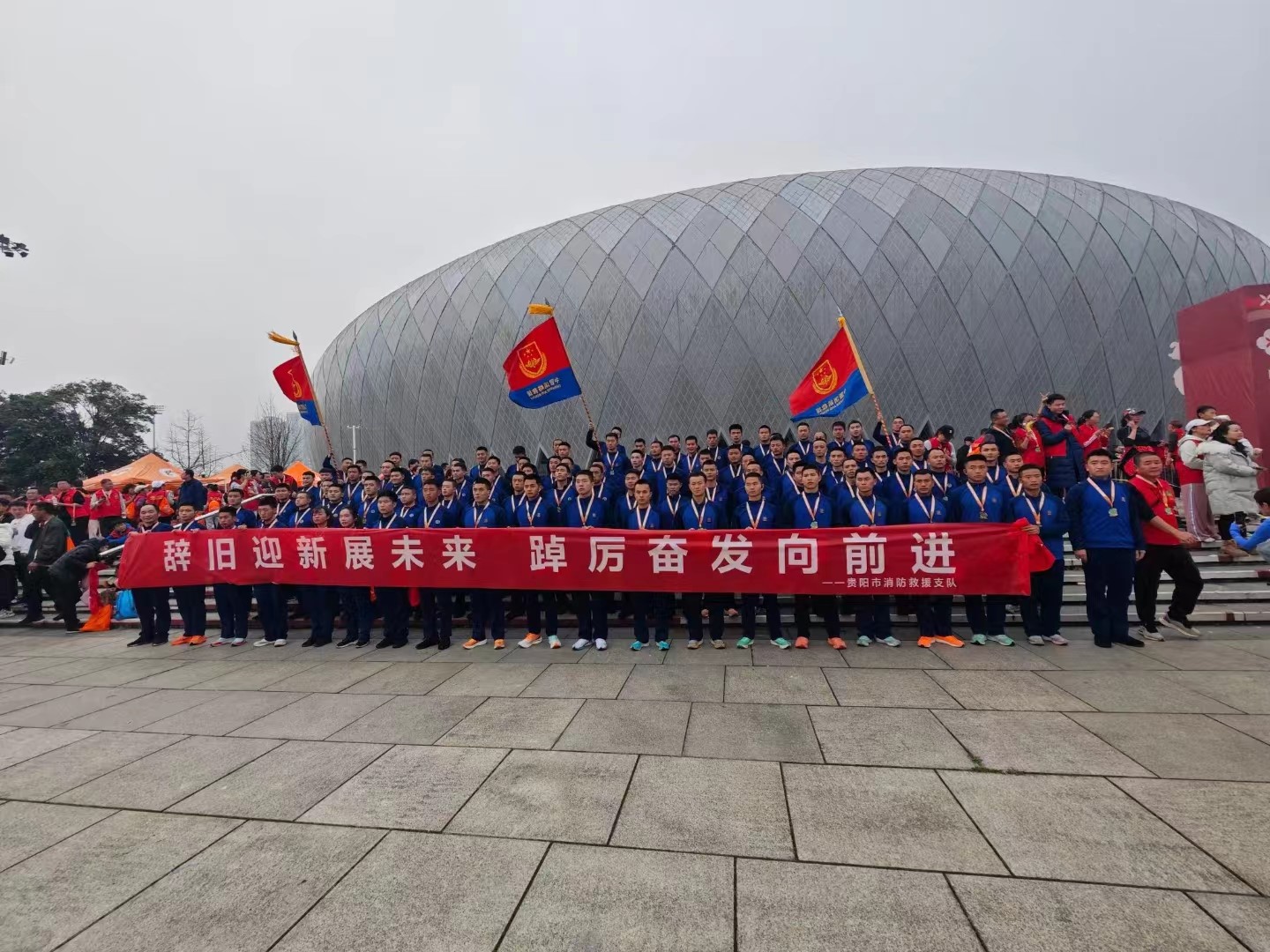 此次迎新跑活动总长约5公里,沿途经过观山东路—观山西路—万达广场—云潭南路—贵阳奥体中心。活动期间,大队每一名消防救援人员都全力以赴,你追我赶,互不认输,尽情挥洒汗水。虽然汗水湿透了衣背和头发,但大家都克服天气严寒带来的不利影响,互相鼓励、帮助,一一冲刺抵达终点,充分展现了白云消防救援队伍蓬勃向上、奋发有为、开拓进取的精神面貌和高昂的士气。