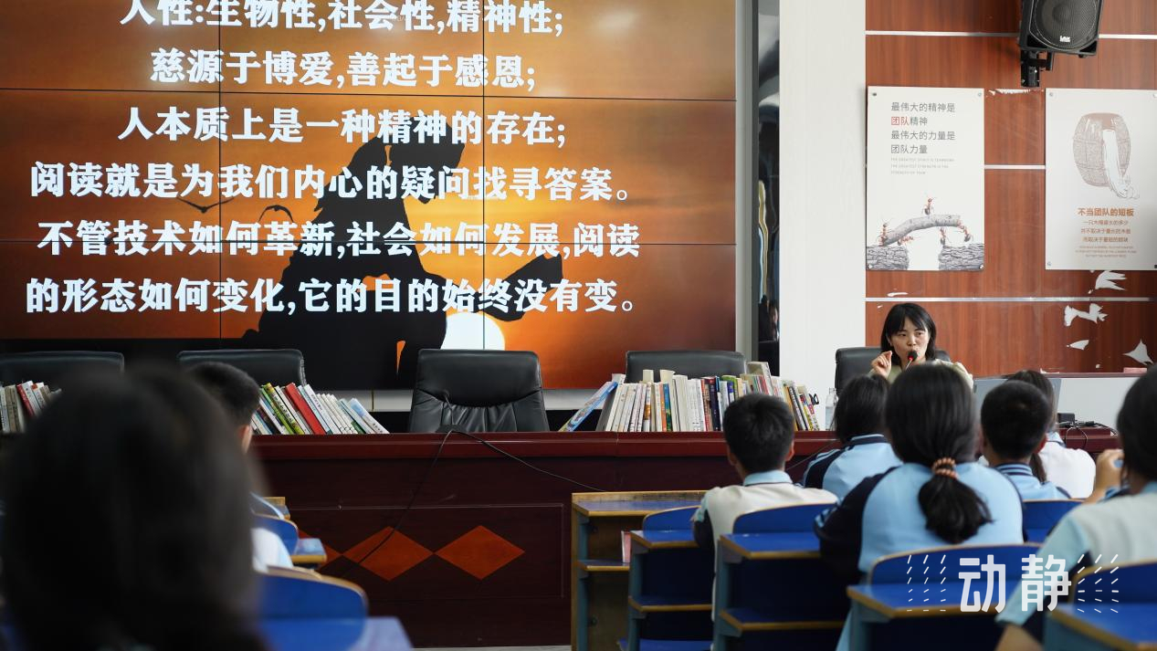 随着分享的深入,张婷坦诚地向孩子们展示了自己的阅读历程。从最初痴迷文学作品中“美好的风景、动人的故事、细腻的情感”,到后来不得不面对现实生活压力时的困惑与挣扎。“我曾经非常排斥商业、经济类书籍。”她微笑着回忆,“觉得那些书充满功利主义,会让人失去对生活的敏感。”但生活的转折让她不得不重新审视这些“实用”的书籍,而正是这种跨界的阅读,最终帮助她找到了事业的方向,实现了从阅读受益者到推广者的转变。