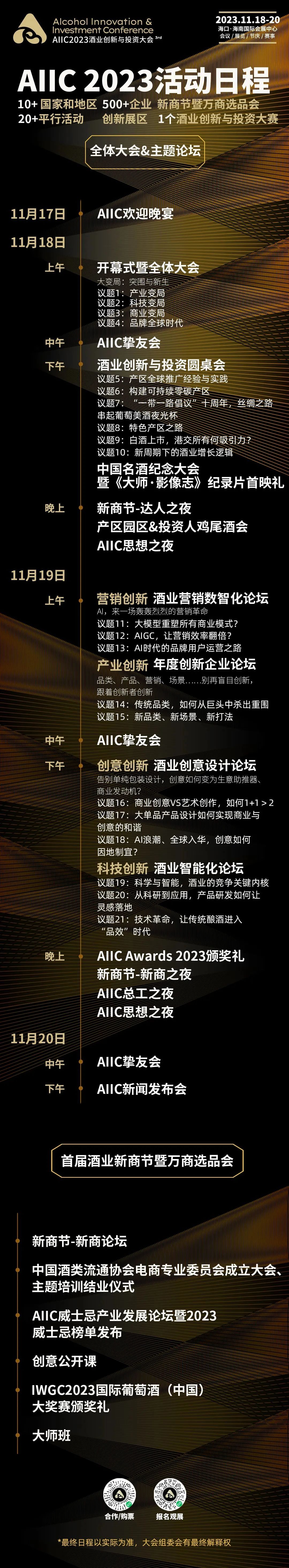 11月18日,AIIC 2023酒业创新与投资大会全体大会将在海南海口举行,寻找破题之策。已确认参会嘉宾包括:
