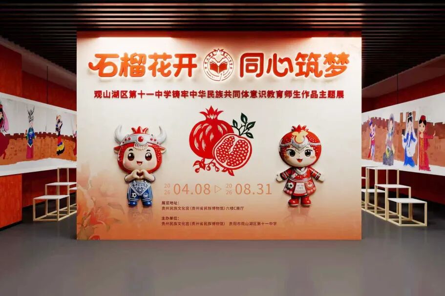 贵州民族文化宫(贵州省民族博物馆)与贵阳市观山湖区第十一中学联合策划的“石榴花开,同心筑梦”观山湖区第十一中学铸牢中华民族共同体意识教育师生作品主题展将于2026年4月8日在贵州民族文化宫(贵州省民族博物馆)6楼C厅正式展出。