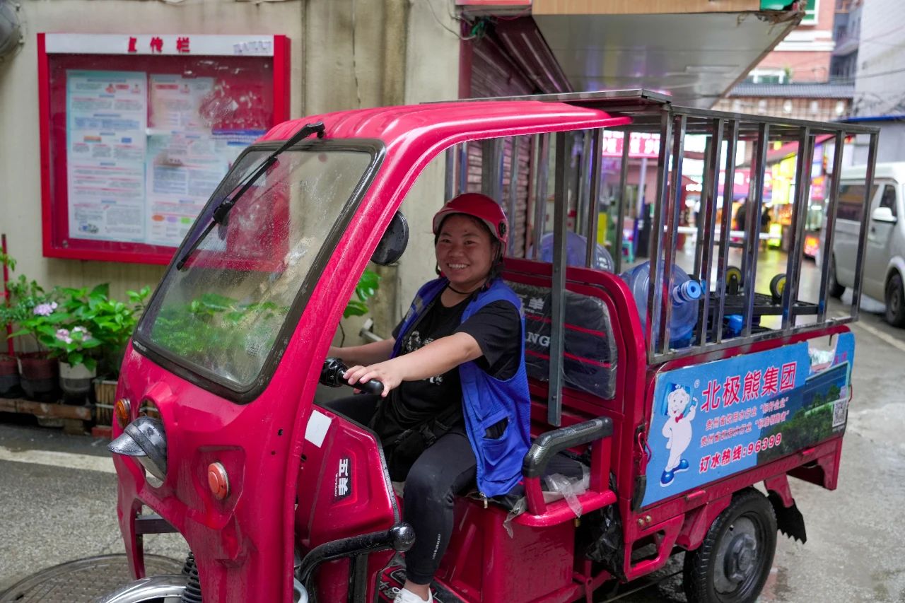 谈及为何选择这份在外人看来颇为辛苦的职业,金方翠的脸上浮现出朴实的微笑。“当初选择这份工作,就图个时间上灵活,能顾得上孩子上学放学。刚入行时对我来说确实吃力,扛着几十斤重的水桶穿梭于各小区、攀爬楼梯,一天要重复十几次。肩膀被磨得生疼、胳膊酸胀抬不起来的经历依然记忆犹新,后来慢慢就练出来了”。没错,时间是最好的老师,四年下来,金方翠不仅摸索出了省力的窍门,学会了调整呼吸和步伐,身体也渐渐适应了这份“辛劳”。她坦言,“这份工作只要肯出力,就能带来稳定的收入,就能保障家里的生活,让孩子安心上学”。