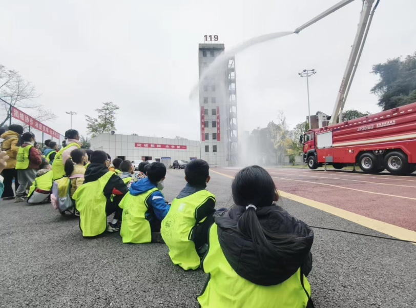 在展示环节中,举高喷射消防车让小记者们看到了技术发展带来震撼场面,高层火灾面前,消防员只需要操作举高喷射消防车就能将火熄灭,尽可能地减少人员伤亡和财产损失。喷水枪还能变换喷水方位和方式,炫酷的操作让小记者们欢呼鼓掌,纷纷表示今后要好好学习,研究出更厉害的消防车,为消防员们减少出警伤害,保护好消防员们的安全。