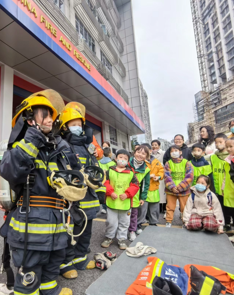 在体验过程中,消防员通过趣味问答、角色扮演等形式,教授正确报警方式、家庭防火常识和火场逃生要点,孩子们积极互动、踊跃发言。小记者们还围绕消防员的日常工作、装备使用与救援经历踊跃提问,消防员一一细致解答。面对面交流中,孩子们不仅收获了专业知识,更感受到“火焰蓝”背后的坚守与担当。