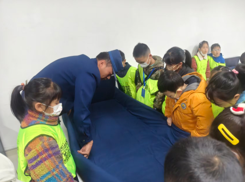 走进消防员的宿舍,整齐划一的环境和棱角分明的“豆腐块”被子吸引了孩子们的目光。消防员现场演示叠被过程,讲解每一个折叠细节背后的规范与意义。小记者们认真观摩,从中体会到严谨作风与纪律意识在消防救援工作中的重要作用。