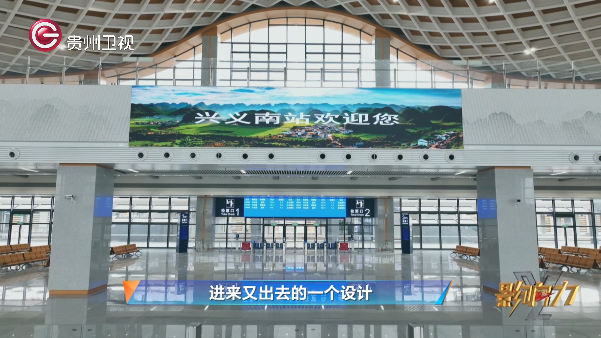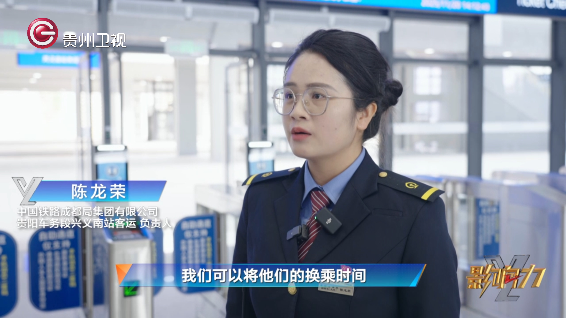 陈龙荣 贵阳车务段兴义南站客运负责人:“盘兴南站与万峰林机场距离有1.5公里,我们设有空铁联运换乘廊道,总长224米,我们可以将换乘时间缩短至5分钟之内。更大的亮点就是我们的综合服务中心,售票处设在我们的候车室内,也能够缩短旅客的时间。我们将验证功能增加到我们的闸机上,相当于从进站到乘车,我们只需要取一次身份证,然后就进入站台候车。”
